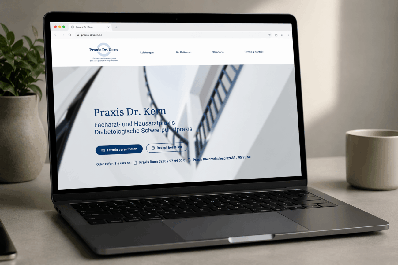 Die alte Website der Praxis Dres. Kern hat nicht mehr das gezeigt, was die Praxis heute ist: modern, spezialisiert und klar auf Patienten ausgerichtet. Genau deshalb haben wir den gesamten Auftritt neu gedacht – von der Struktur über das Design bis hin zur technischen Umsetzung.